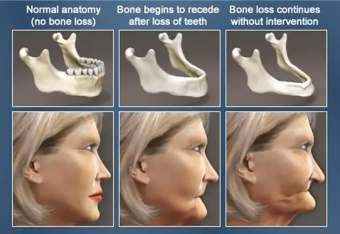 When teeth are missing, the jawbone no longer receives the stimulation it needs to maintain its shape and density. Over time, this can lead to bone shrinkage, especially in patients who have worn dentures for many years.